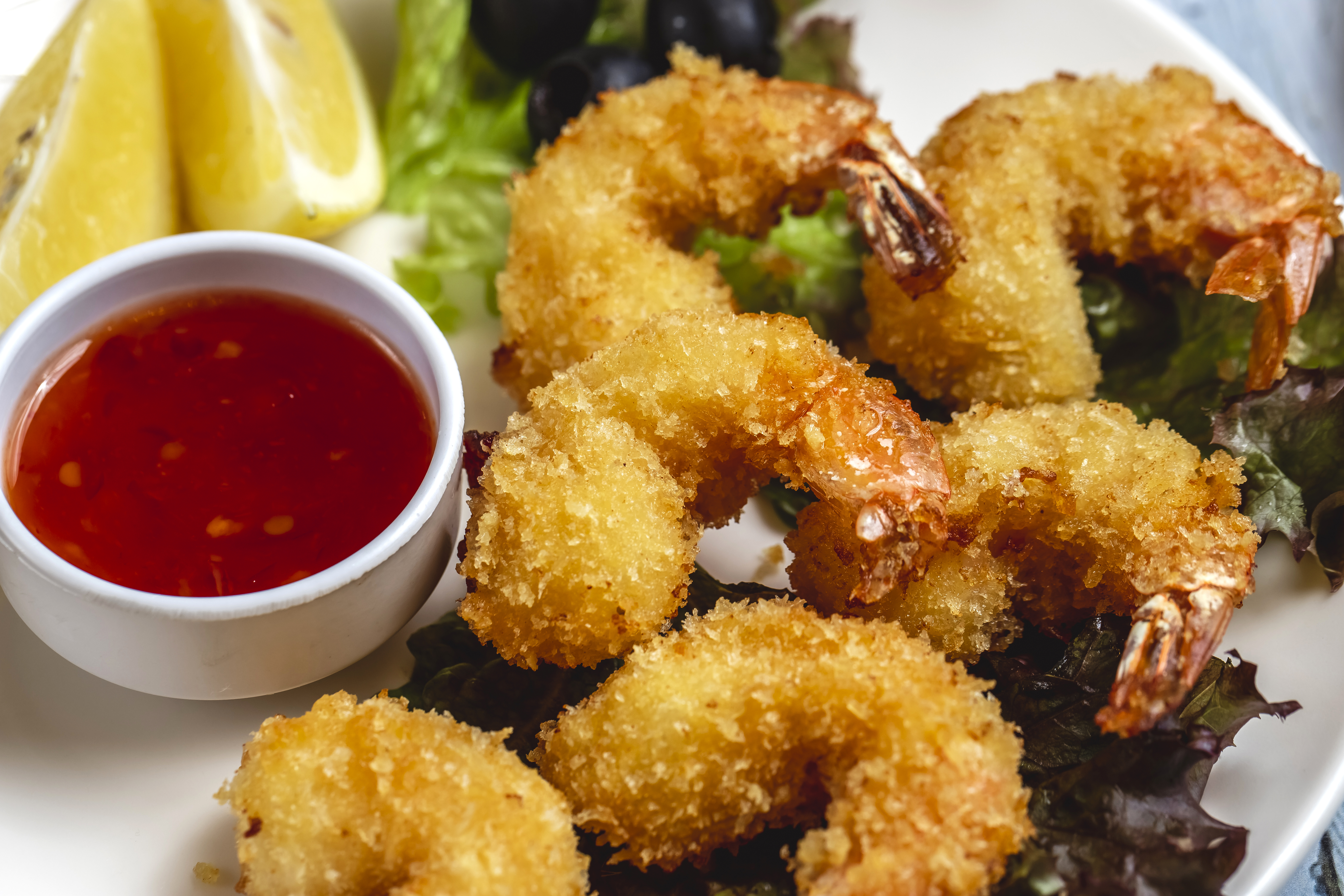 side-view-tempura-shrimps-with-sweet-chili-sauce-slice-lemon-black-olive-plat...